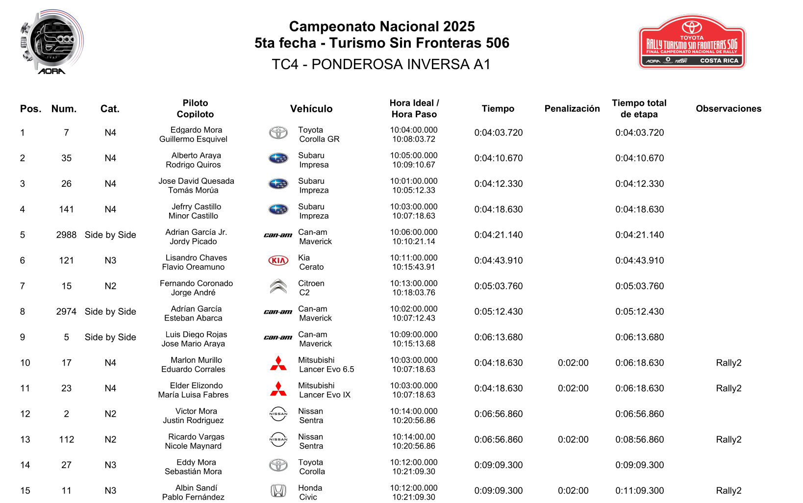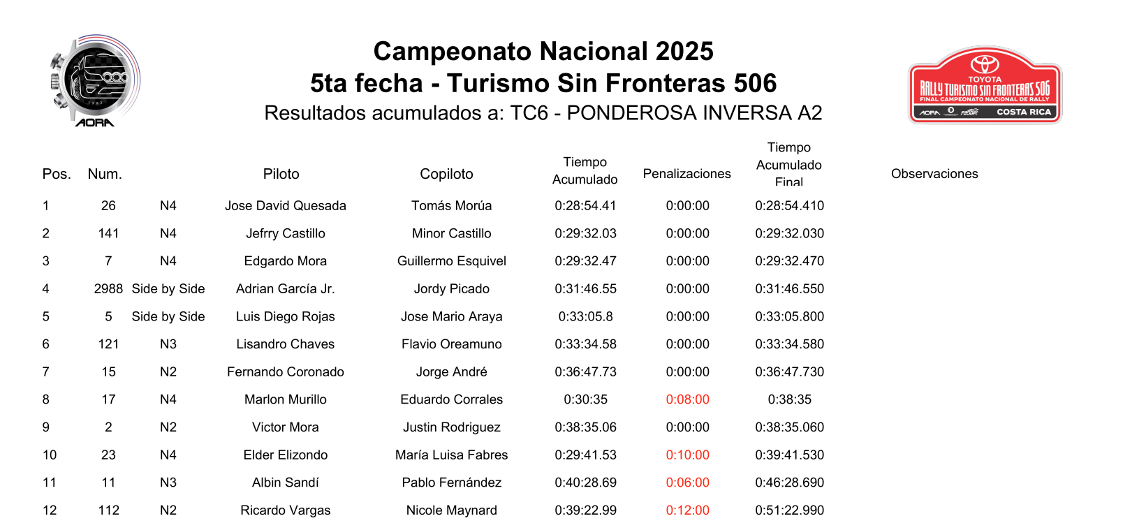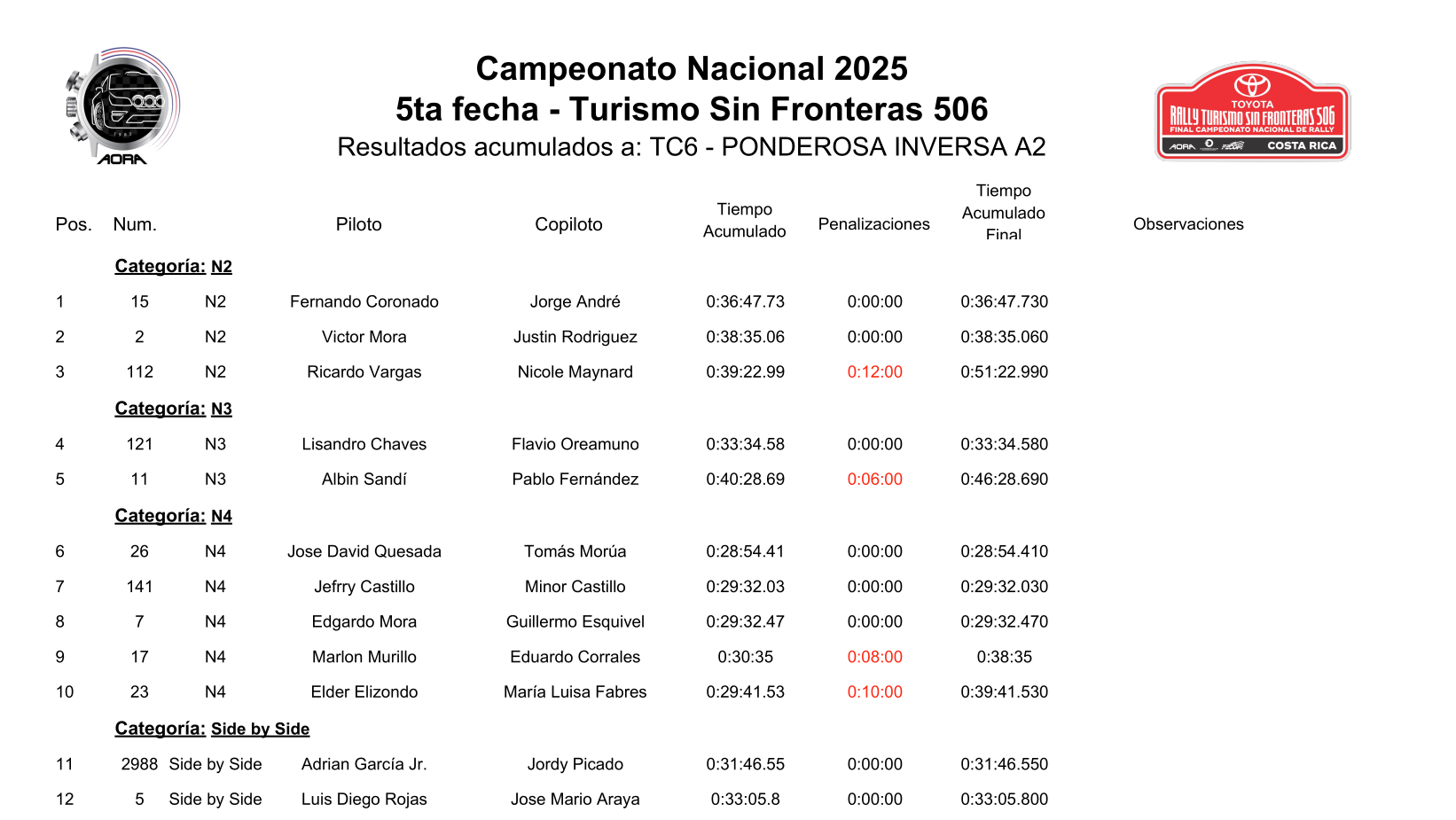 Resultados oficiales del Campeonato Nacional de Rally Costa Rica