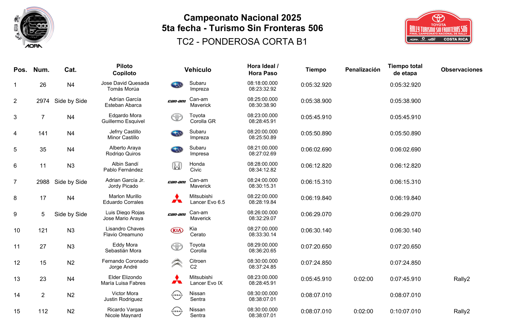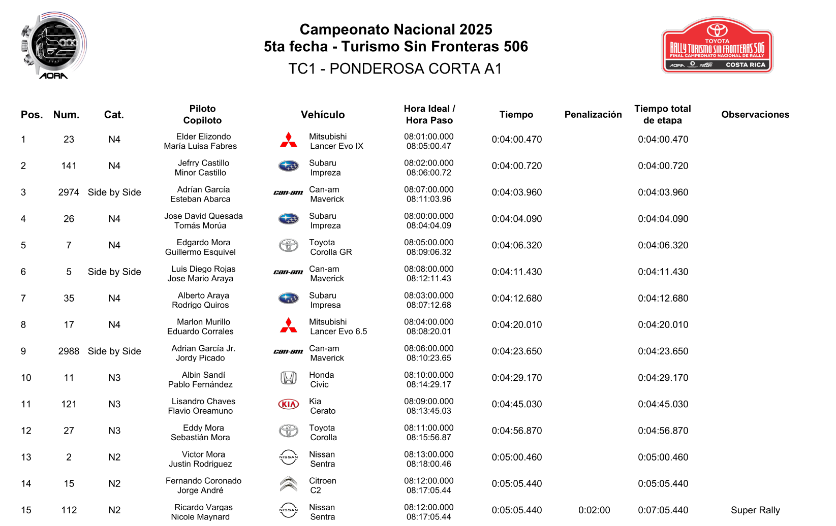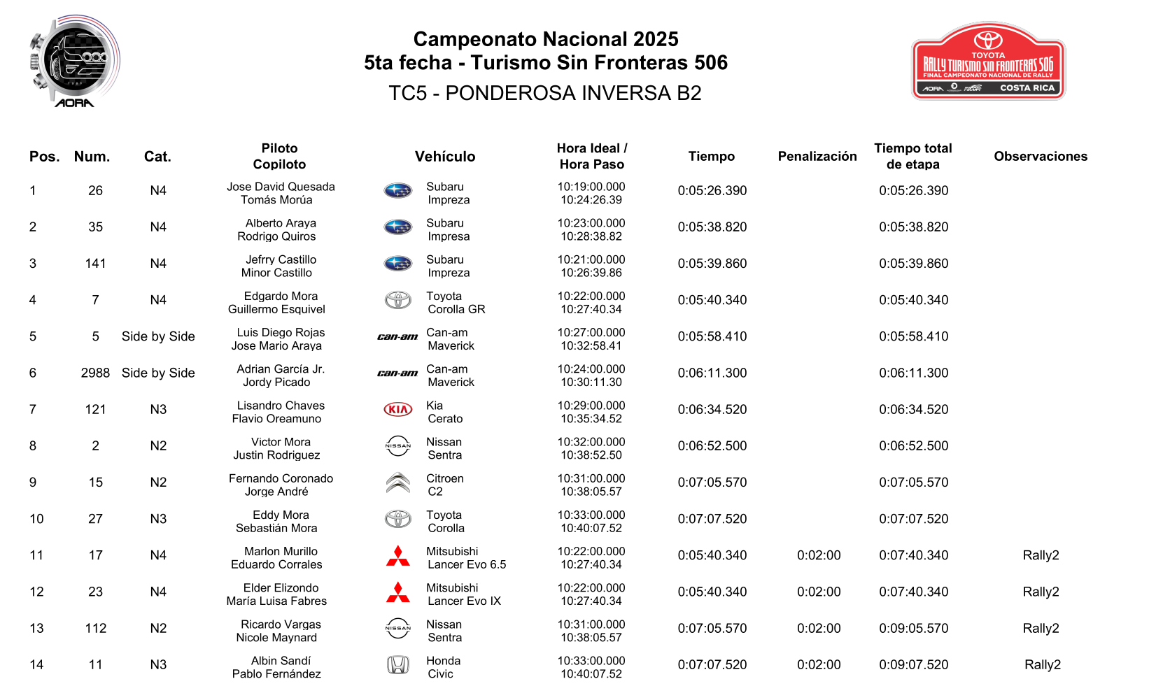 Resultados oficiales del Campeonato Nacional de Rally Costa Rica