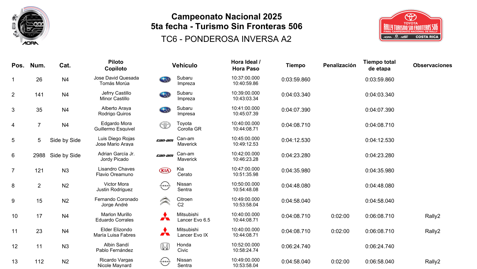 Datos obtenidos del registro oficial del Campeonato Toyota 2025.